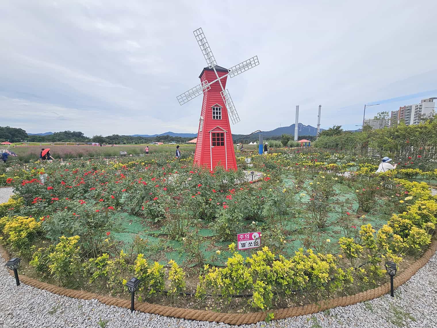 특히 장미밭 옆 풍차는 너무 그림 같아서 꼭 찍어야 하는 스팟 중 하나였어요. 주변에 아이들을 위한 귀여운 테마 존도 많아서 가족 단위 관람객이 많아 보였습니다.