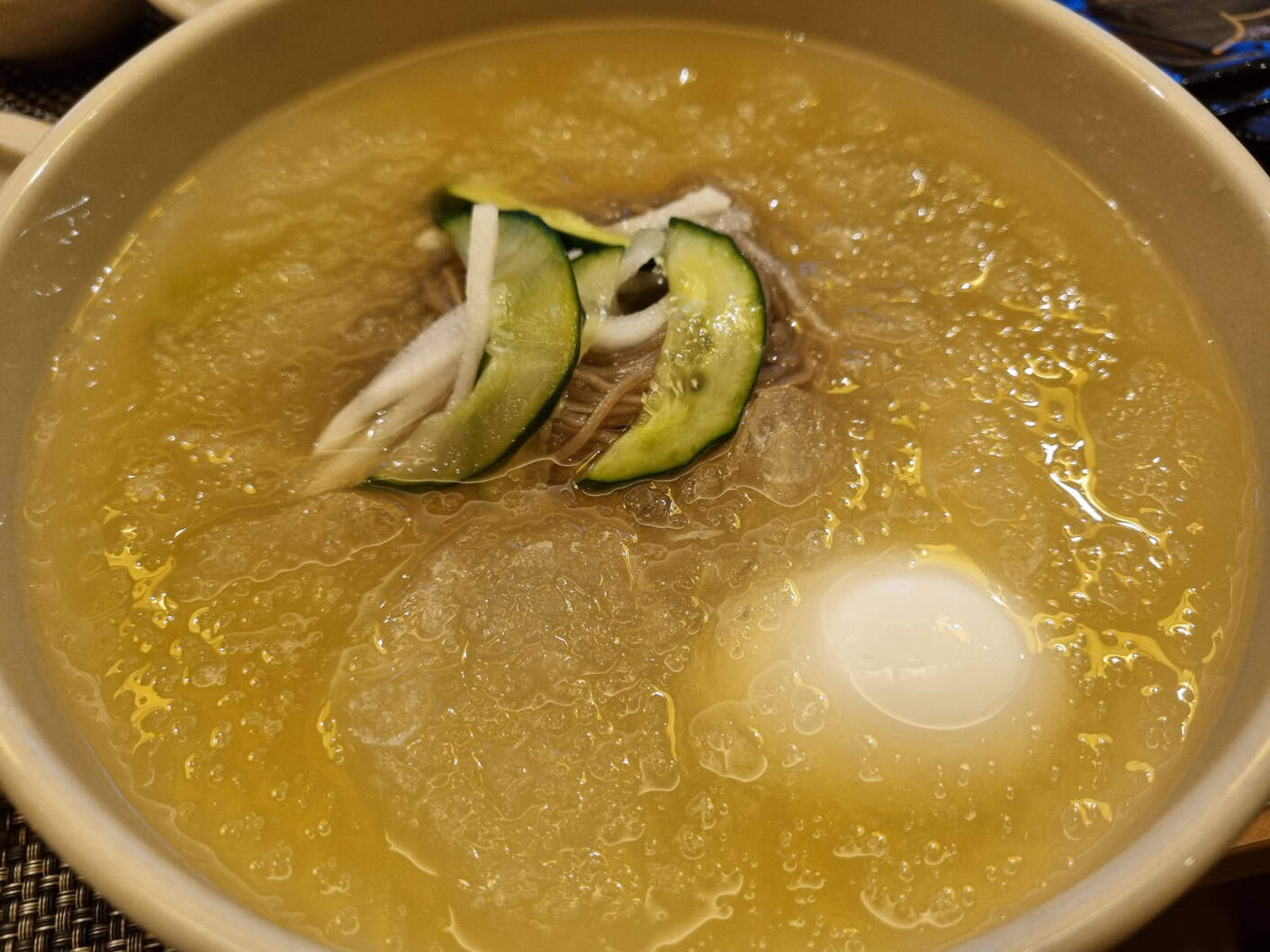내부 분위기와 어울리게 음식도 하나하나 정성스럽게 플레이팅되어 나왔는데, 맛은 물론 시각적으로도 만족스러웠어요. 특히 이 살얼음이 동동 떠있는 물냉면은 국물이 시원하면서도 깔끔해 한 번 더 리필을 요청했을 정도예요.