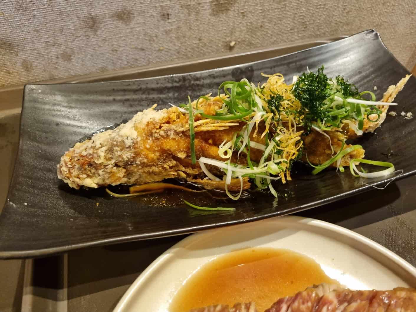 또, 개인적으로 마음에 들었던 건 생선튀김인데, 여러 가지 채 종류에 생선을 곁들인 독특한 스타일이 바삭함과 부드러움을 동시에 주더군요. 튀김옷이 기름지지 않고 고소했기에 깔끔하게 한 접시 클리어했습니다!
