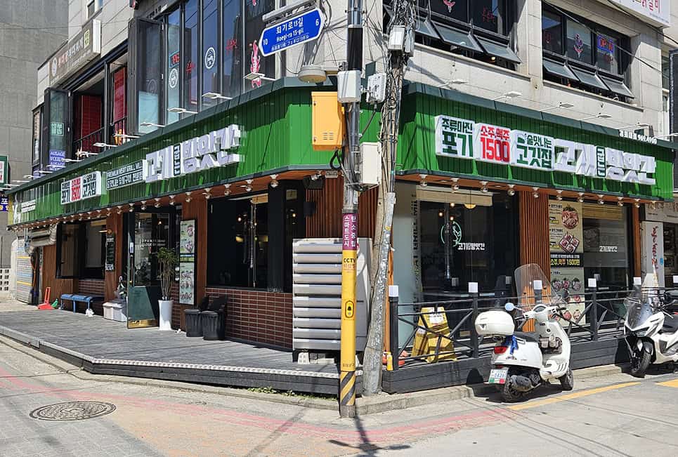 고기굽는방앗간 경희대점은 회기역 맛집 추천 고기집이고 회기역 1번 출구에서 도보 약 10분 거리라 걸어가기에도 부담 없었어요. 자가용을 이용하는 분들을 위해 가게 옆에는 두 대 정도 주차할 수 있는 공간이 있는데 주차공간이 협소하니까 가급적 지하철 이용을 추천드려요.