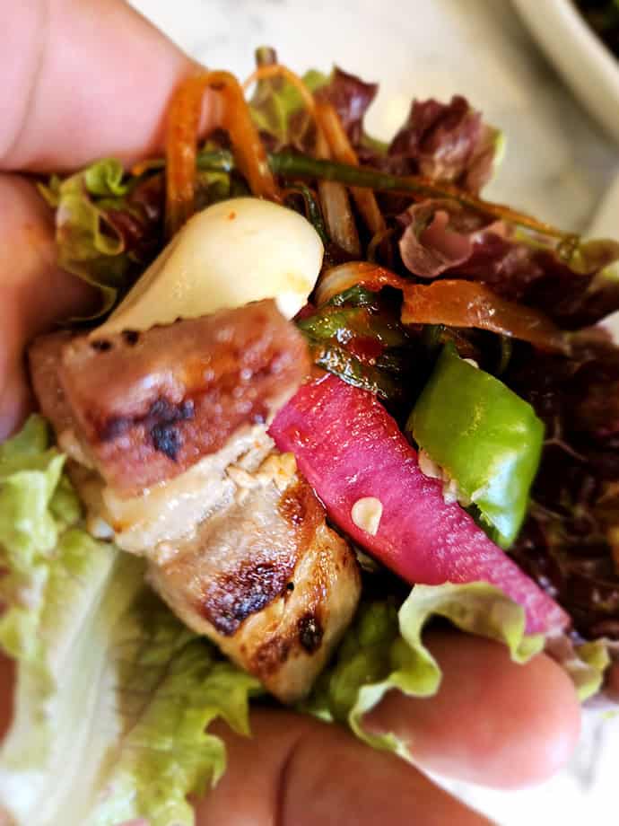 고기에 쌈채소뿐 아니라 깻잎장아찌에 싸 먹어봤는데 그 깔끔함이 정말! 따로 설명이 필요없었어요. 느끼함 없이 깔끔하게 즐길 수 있어서, 고기가 입에서 사르르 녹는 느낌이었답니다.
