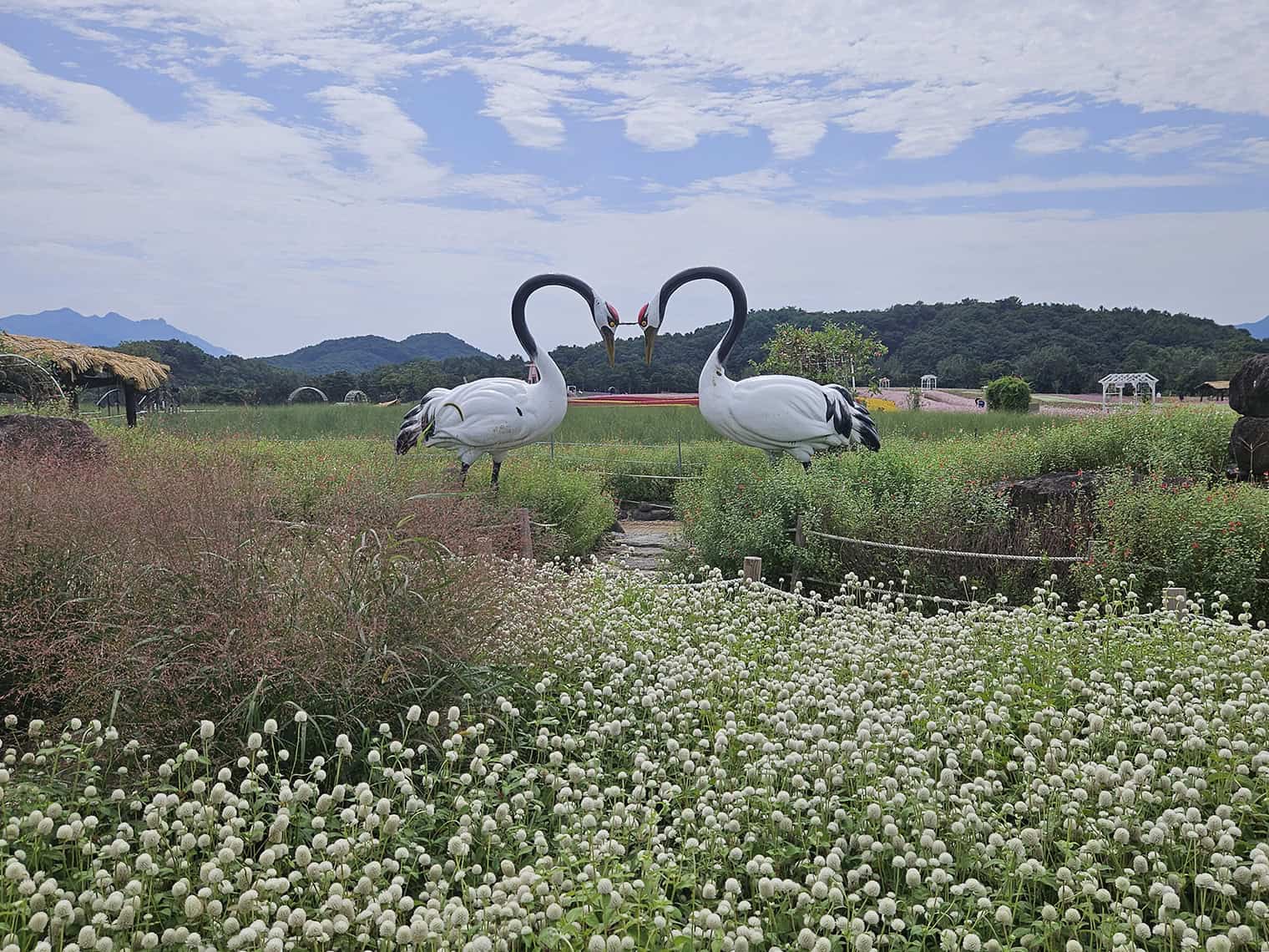꽃밭 사이로 난 길을 따라 걷다 보면 해바라기와 천일홍까지 만나볼 수 있어 마치 동화 속에 들어온 기분이었죠. 월요일이라 그런지 비교적 조용했고, 꽃 냄새와 가을의 선선한 공기가 어우러져 기분도 너무 좋았어요. 정말 ‘힐링’ 그 자체였답니다.