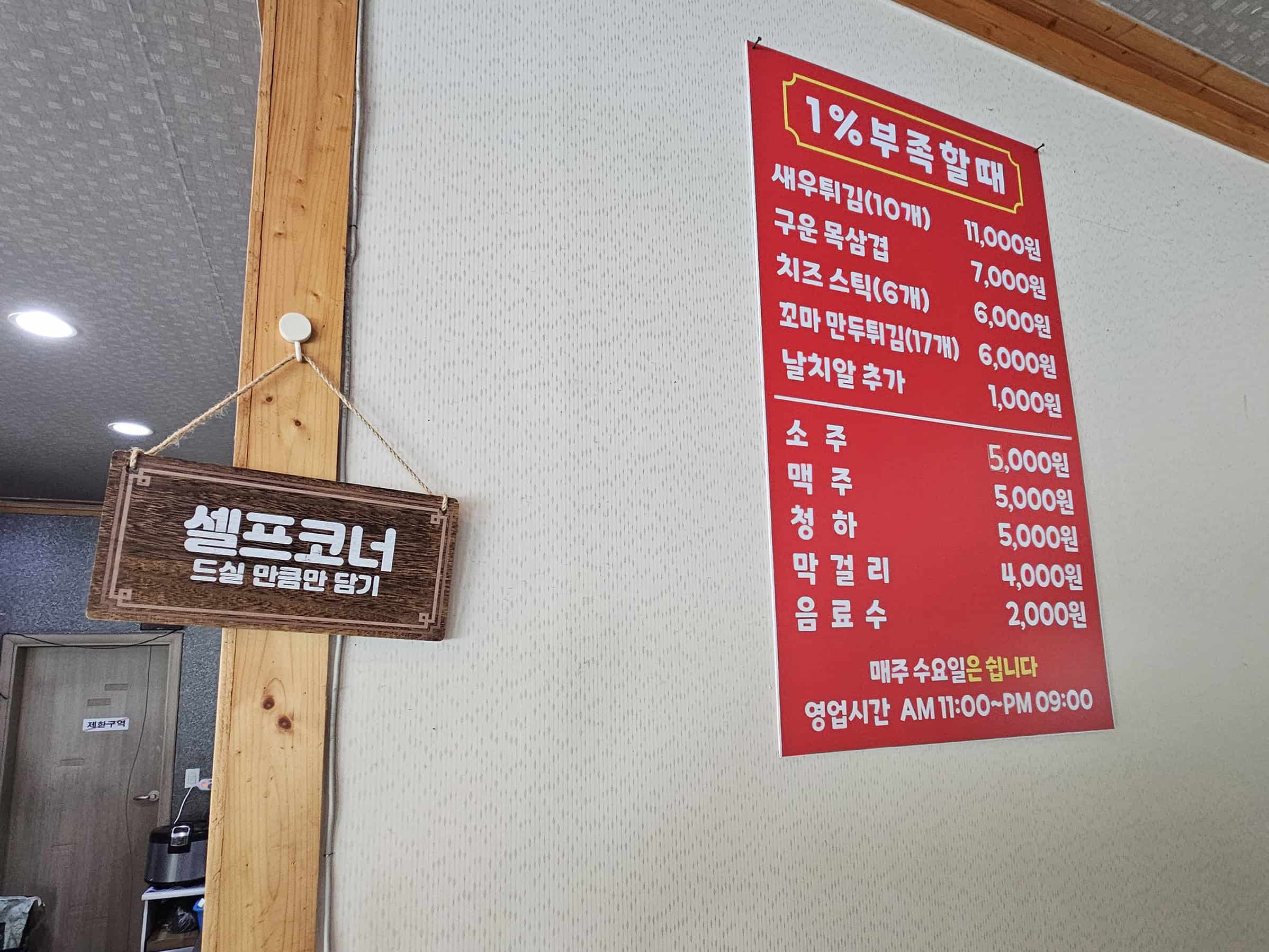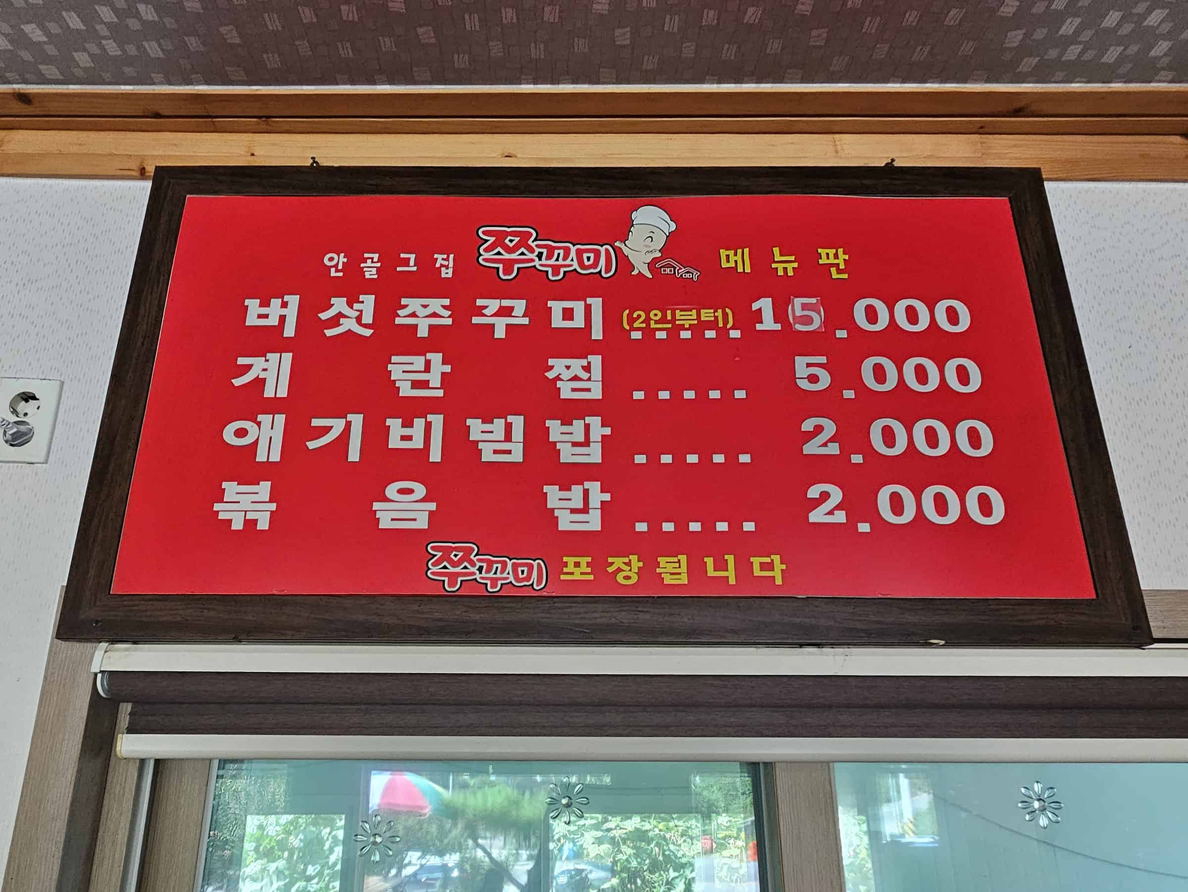 ♥메뉴 ▶버섯쭈꾸미 15,000원 ▶계란찜 5,000원 ▶애기비빔밥 2,000원 ▶볶음밥 2,000원