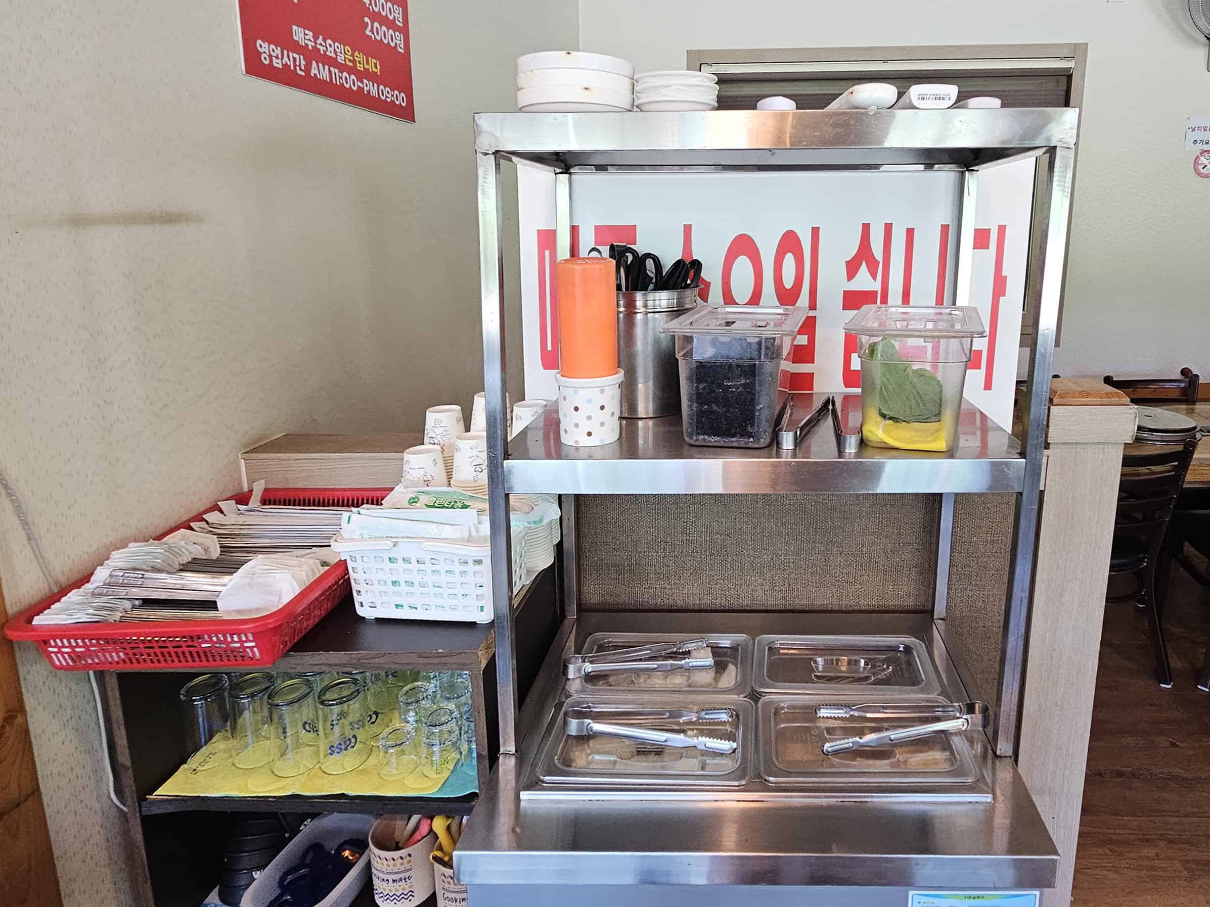 반찬은 셀프바를 통해 가져갈 수 있는데요, 부담 없이 필요한 만큼만 챙기면 되니까 깔끔하고 좋더라고요. 효율적인 운영 방식을 보니 이곳이 왜 인기 있는지 조금씩 실감했던 순간입니다.