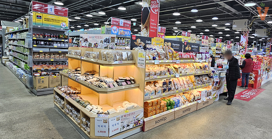 눈에 들어오는 여러 종류의 떡과 빵 등