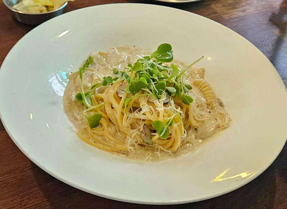 그리고 진짜 큰 인기를 모았던 건 고르곤졸라피자였어요. 꿀 찍어 먹는 그 달달-짭조름함, 말이 필요 없어요. 파스타에서는 풍기파스타를 빼놓을 수 없는데, 버섯과 크림의 밸런스가 너무 만족스러웠고, 언니샐러드는 상큼한 맛으로 피자와 파스타에 곁들여 먹으니 최고였답니다. 해물크림파스타도 싱싱한 해산물 향이 살아있었어요. 특히 홍합이랑 새우가 풍부하게 들어가서 친구들이 다들 극찬했답니다.