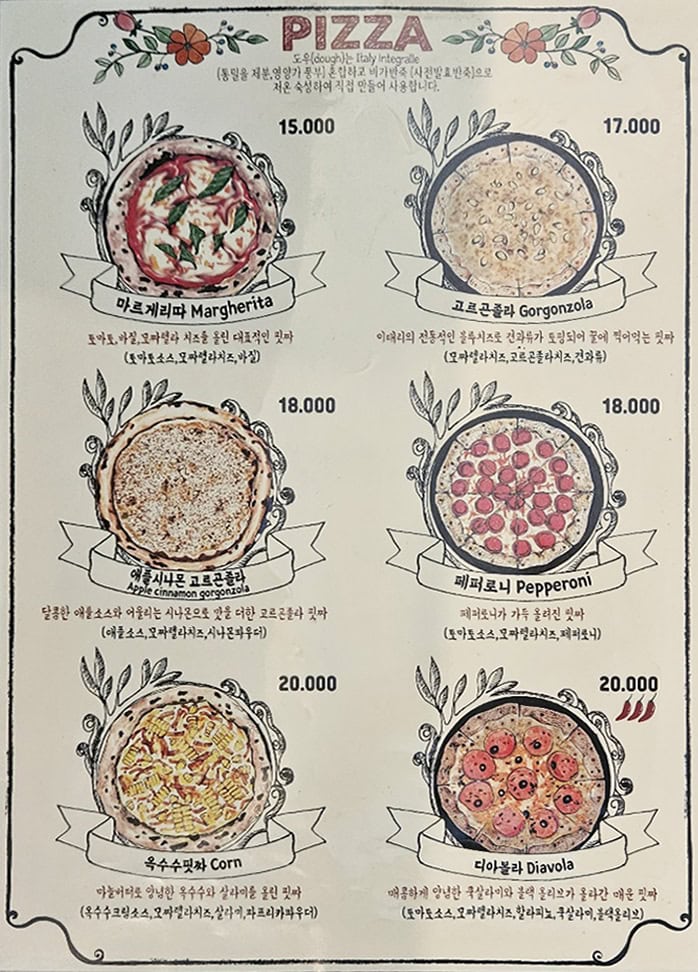가게 문을 열고 들어서자마자 느껴진 건, 피자 냄새보다도 따뜻한 조명과 아기자기한 인테리어였어요. 화려하진 않아도 주인 언니의 감각이 그대로 녹아난 느낌이랄까? 친근함과 동시에 아늑한 분위기가 가득했어요.