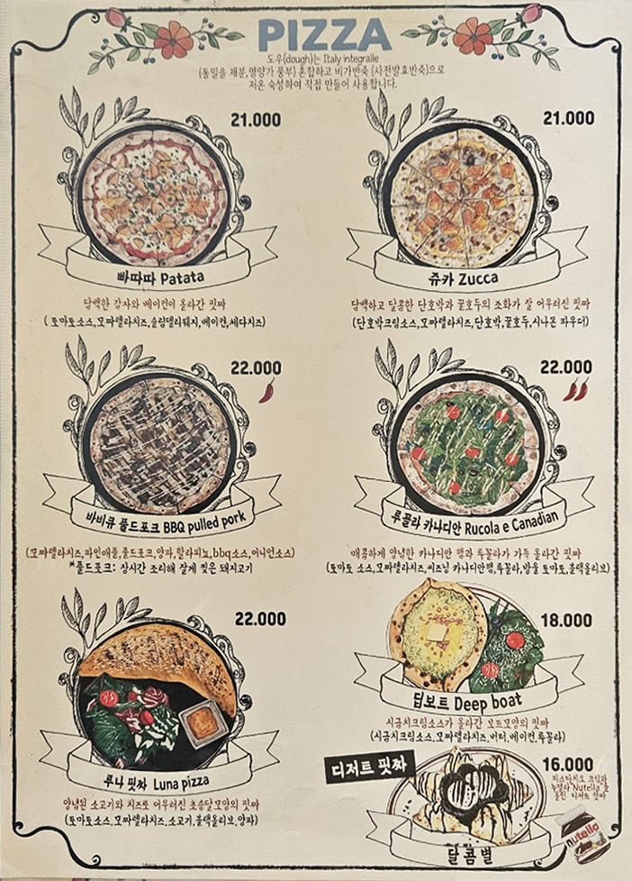 가게 문을 열고 들어서자마자 느껴진 건, 피자 냄새보다도 따뜻한 조명과 아기자기한 인테리어였어요. 화려하진 않아도 주인 언니의 감각이 그대로 녹아난 느낌이랄까? 친근함과 동시에 아늑한 분위기가 가득했어요.