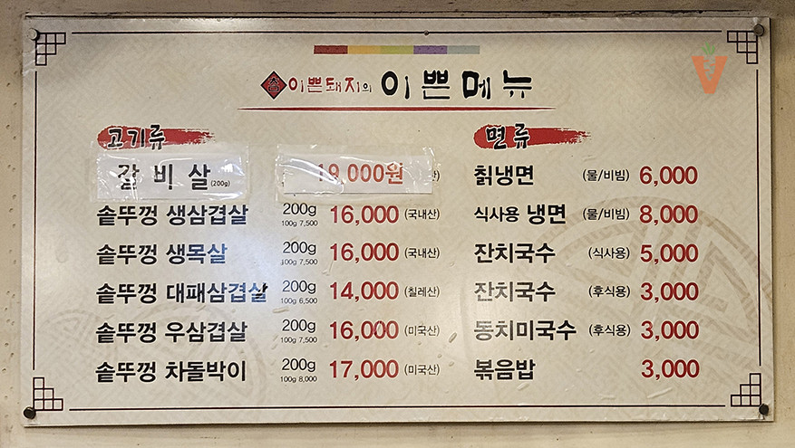 메뉴판을 보면 금액도 비싸지 않고