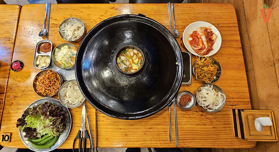 고기를 구워 먹으면서 된장찌개를
