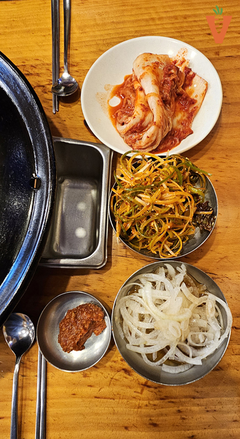 고기를 굽다보면 김치와 무침콩나물도