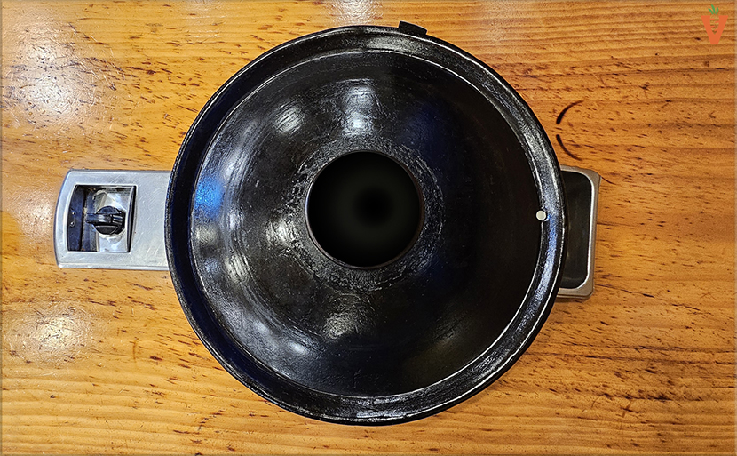 솥뚜껑 한 복판에 홈이 있어서