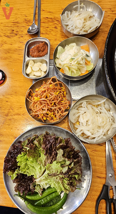 상추 고추 된장 마늘까지 푸짐하게