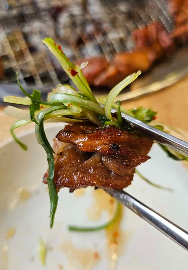 돼지갈비는 쫄깃하면서도 씹는 맛이 살아있고, 입에서 녹을 정도로 부드럽고 담백했어요. 특히 고기가 육즙이 많아서 딱 한 점 먹으면 절로 웃음이 날 정도였답니다!