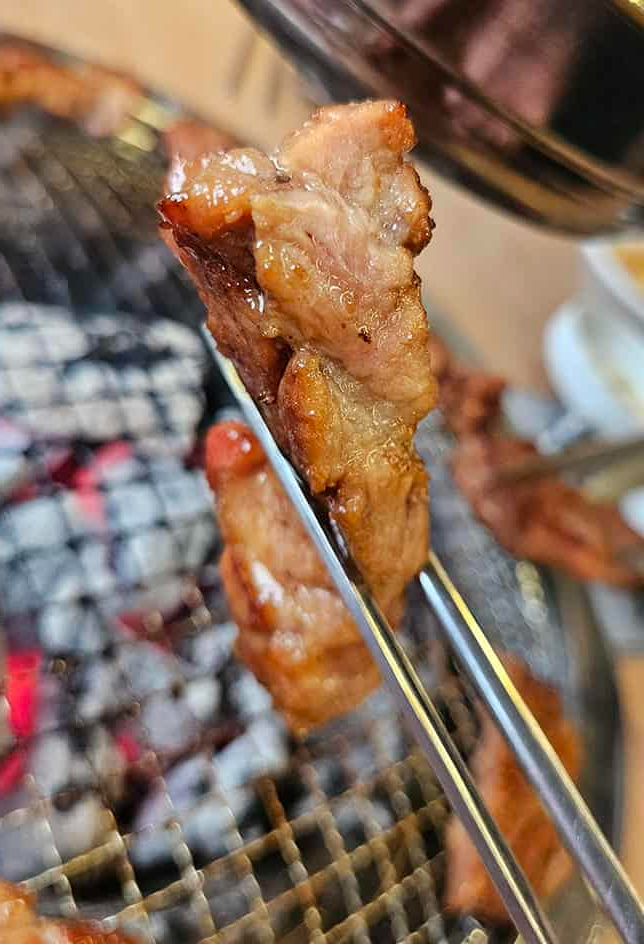 돼지갈비는 쫄깃하면서도 씹는 맛이 살아있고, 입에서 녹을 정도로 부드럽고 담백했어요. 특히 고기가 육즙이 많아서 딱 한 점 먹으면 절로 웃음이 날 정도였답니다!