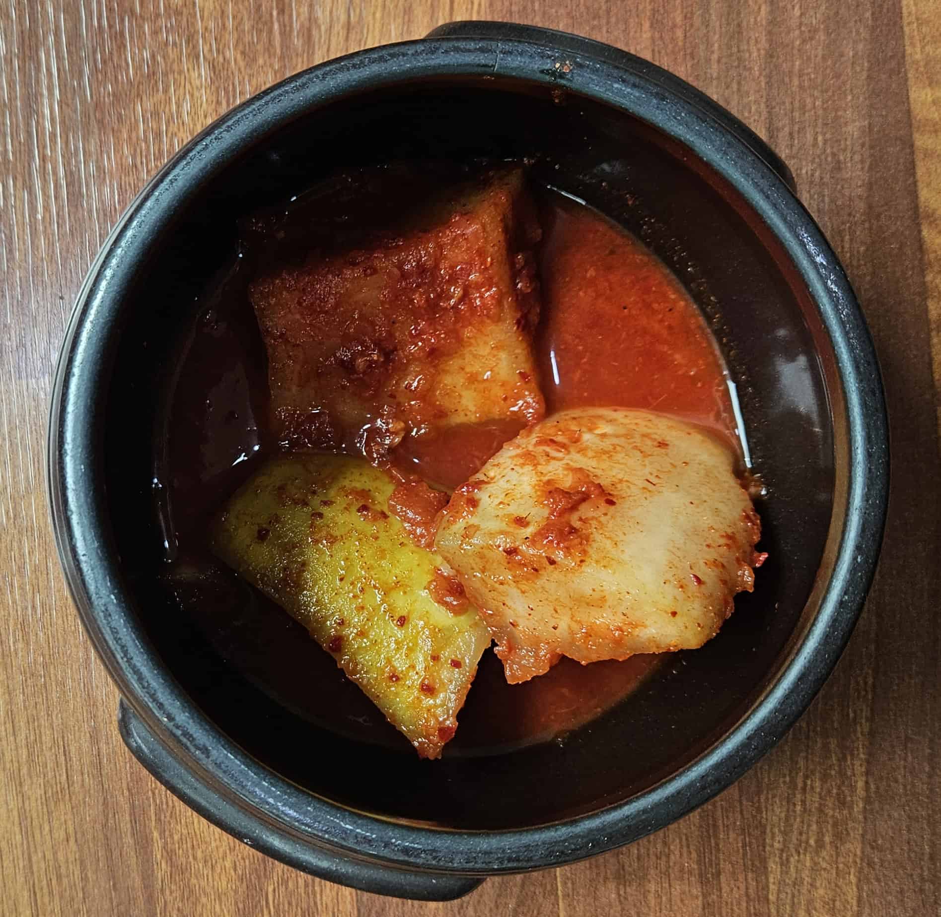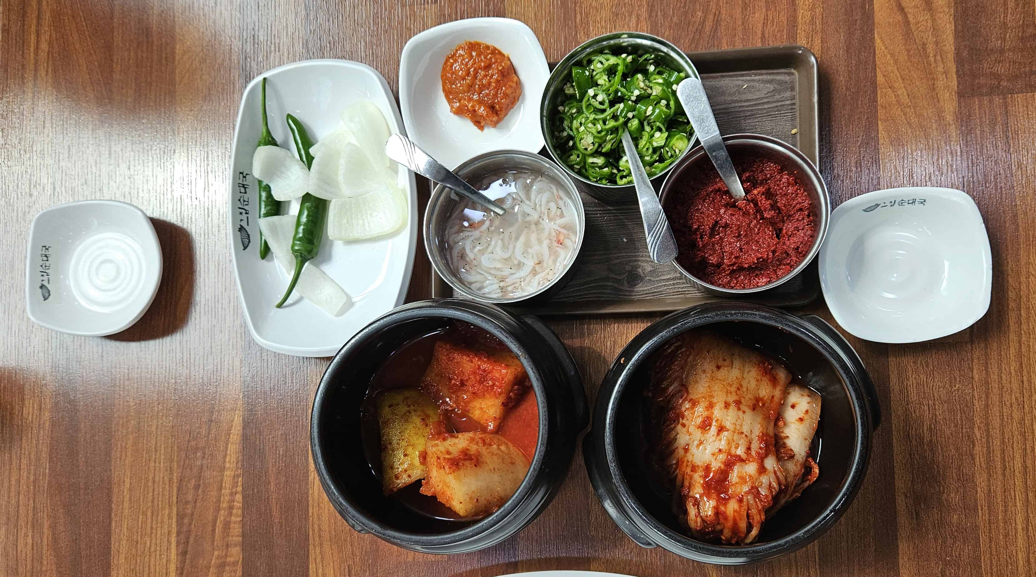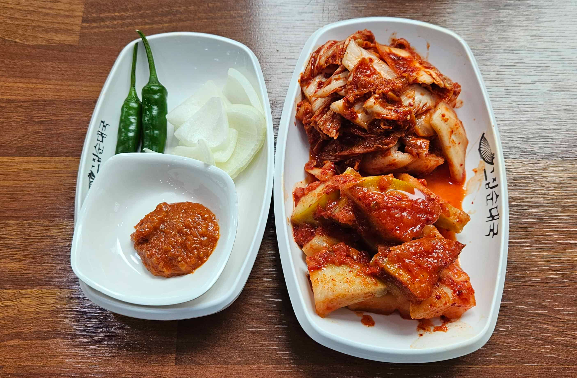 동두천 그집순대국의 기본 밑반찬은 정성이 가득 느껴졌어요. 김치와 깍두기, 고추양념 등 간소하지만 맛깔스러운 구성이었는데요, 특히 새콤달콤하면서도 깔끔한 맛이 도는 깍두기와 김치가 포인트였습니다.