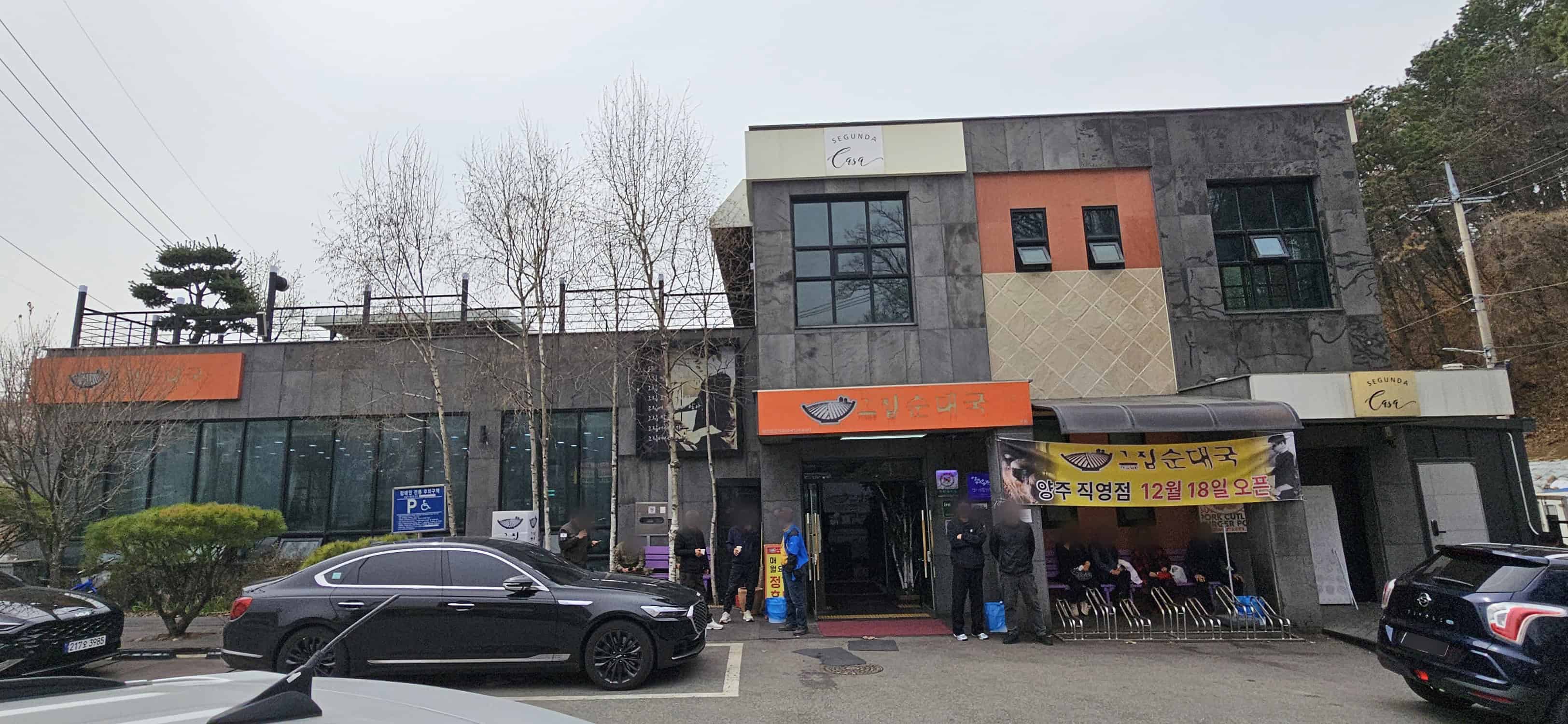 동두천 그집순대국 본점은 찾기가 굉장히 쉬워요. 저는 차를 타고 갔는데, 놀랐던 건 주차장이 꽤 넓어서 주차 스트레스가 없더라고요. 널찍한 공간에 바로 차를 대고 들어갈 수 있어 편리했어요.