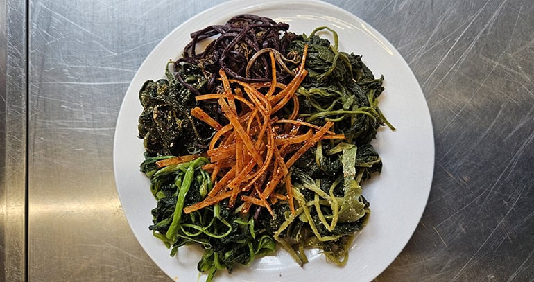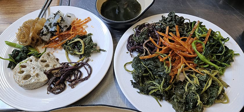 지행역 사랑채의 점심특선은 1인 기준 11,000원인데요, 이 금액에 솥밥 포함한 20여 가지 나물을 즐길 수 있다니 엄청난 가성비를 자랑합니다. 제철 나물 종류가 매일 달라지는 점도 독특해. 무생채, 고사리, 취나물 같은 정겨운 나물부터 잡채, 쌈까지 정말 다양했고, 하나같이 맛도 일품이었어요.