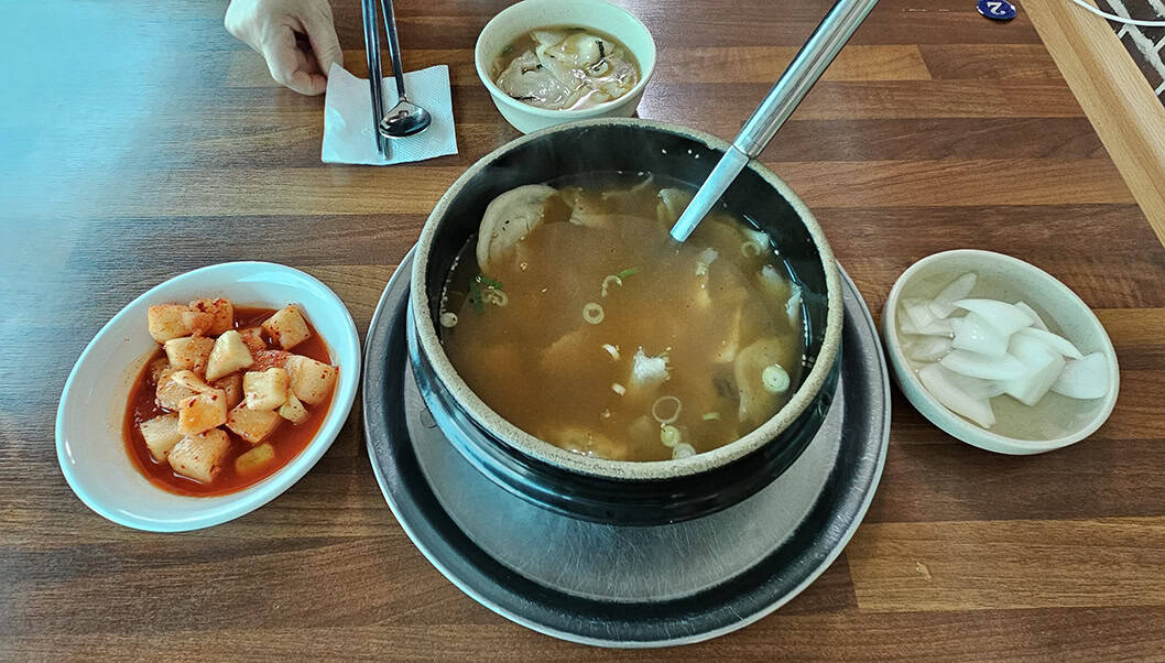 속까지 뜨끈한 감자수제비만두국은 정말 별미였어요. 크고 도톰한 만두가 고소하고 담백한 국물에 푹 잠겨 있어서 보기만 해도 군침이 돌더라고요.