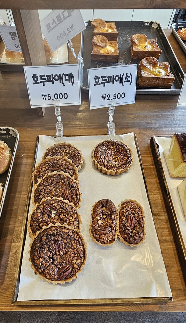 그리고 공갈빵은 독특한 비주얼에 끌려서 샀는데, 겉은 바삭하고 속은 텅텅 비어 있고 달콤한 꿀 쨈이 들어있어서 커피와 먹어도 딱 좋을 것 같았어요. 이런 다양함 때문에 한 번 가면 몇 개씩 꼭 사게 되는 것 같아요. 특히 공갈빵은 어디서도 본 적 없는 매력이라 기억에 많이 남을 것 같아요.