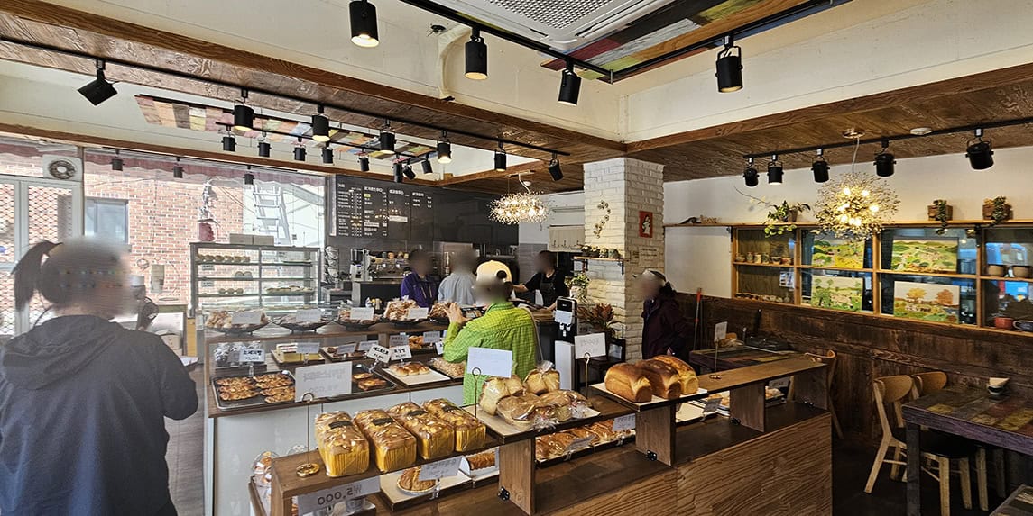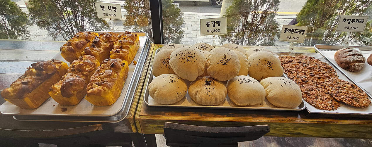 매장에 도착하자마자 고소하고 은은하게 퍼지는 빵 냄새가 침샘을 자극하고 했어요. 점포 자체는 아담하지만 내부는 아기자기하게 멋진 소품들과 가지런한 빵 진열대로 꾸며져 있고 호감이 갈 수밖에 없는 따뜻한 분위기를 느끼기에 충분했어요.