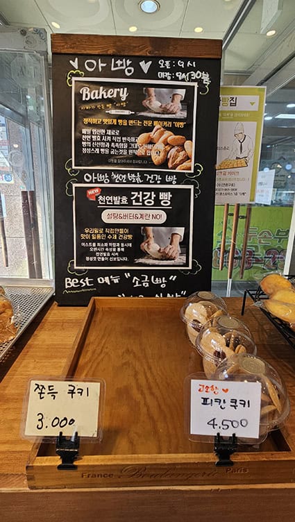 지행역 맛집 아빵에 도착해서 가장 먼저 눈에 들어온 건 깔끔한 내부와 정갈하게 진열된 다양한 빵들이었어요. 안으로 들어가자마자 빵 굽는 고소한 향기에 기분이 한껏 좋아지더라고요. 빵 종류도 기본 빵부터 과자 같은 쿠키류까지 다양했어요. 매장 특유의 소박하고 따뜻한 분위기가 방문자를 더 편안하게 만들어주는 느낌이었어요.