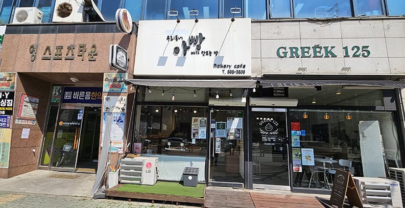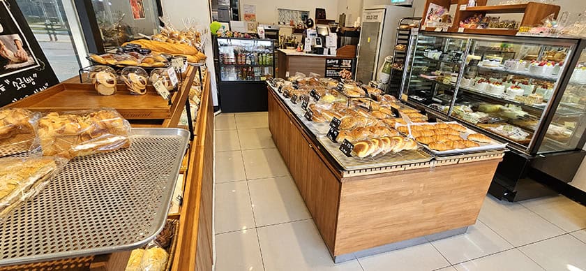 건물 근처엔 다양한 편의점과 카페도 있어서 빵 사가며 간단히 다른 용무도 보기 좋아요. 특히, 바로 길 건너편에 꿈나무 근린공원이 있고, 뒤쪽으로 시민근린공원이 있어요. 빵을 사서 공원에 들려서 산책도 하고 간단히 음료와 간식으로 드시기도 좋아요.