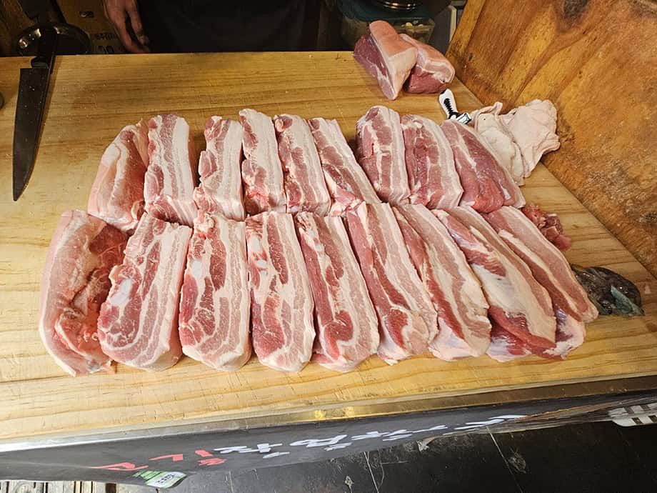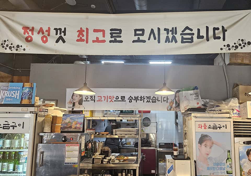 밖에서 고기 굽는 모습도 볼 수 있는데, 불길이 확 타오르며 고기 굽는 모습이 참 인상적이었어요. 매장 입구 들어가면 직접 고기 작업해서 제공해주는 분위기는 믿고 먹을 수 있으면서 맛집 특유의 포근함이 느껴져서 부담 없더라고요.