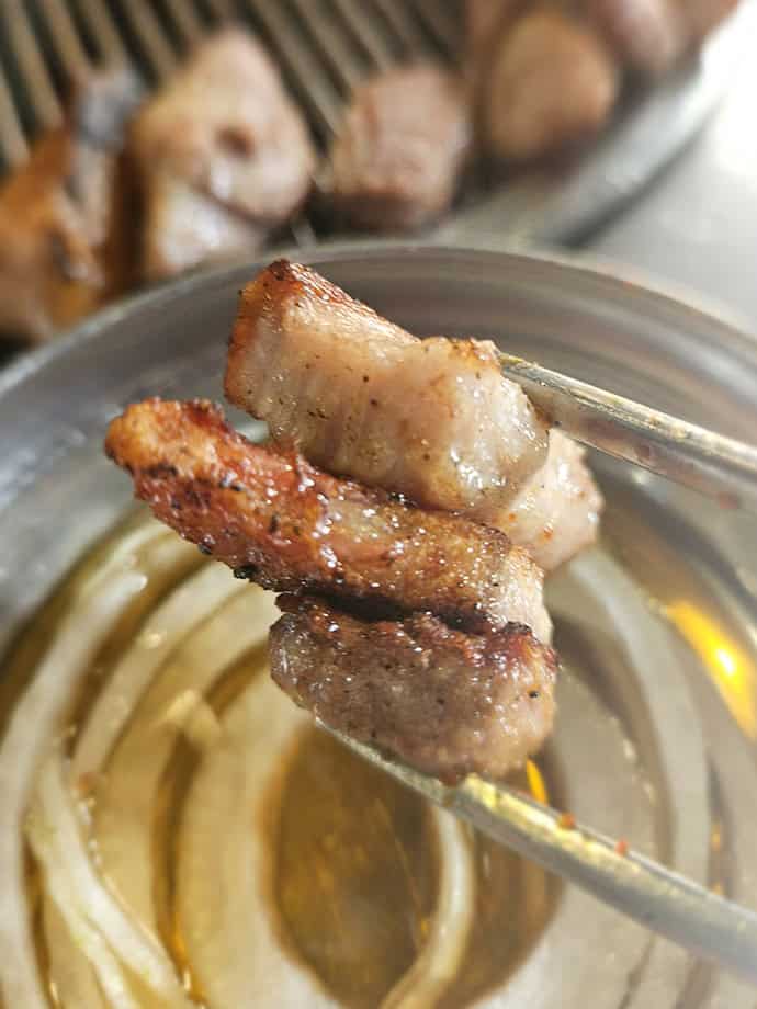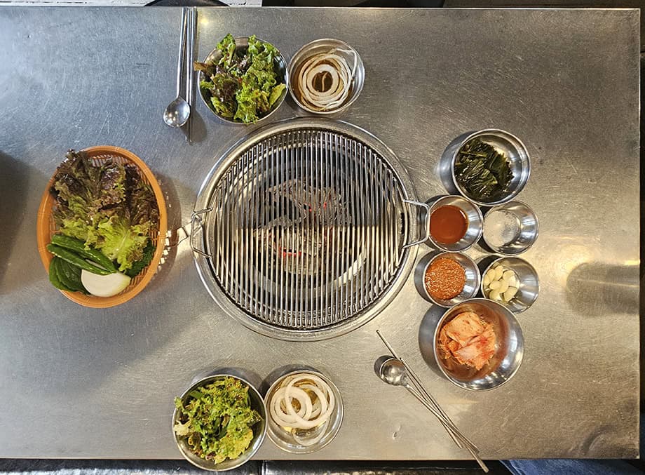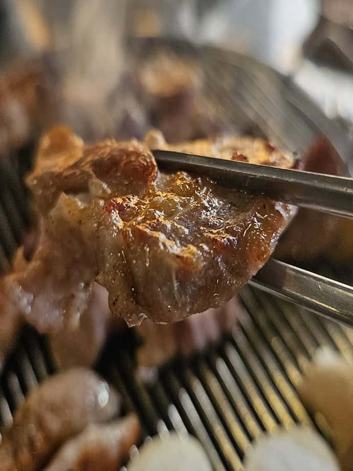 고기 구울 때 처음엔 직원분이 직접 돕는데, 고기 굽는 손길이 엄청 섬세했어요. 간격을 맞춰 뒤집어주고, 적당히 익으면 한 입 크기로 잘라주시는데 정말 맛있게 익더라고요.
