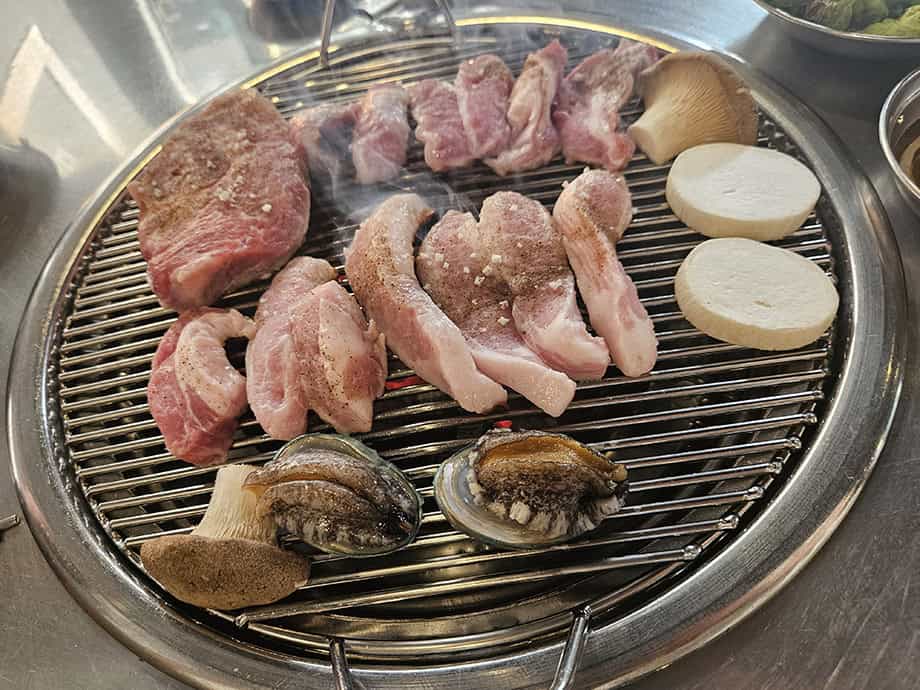 고기 외에도 된장찌개 같은 사이드 메뉴도 푸짐하게 준비되어 있었고, 전복 같은 추가 메뉴도 맛있어서 좋았어요. 다음번엔 껍데기까지 주문해서 더 다양한 메뉴를 즐길 생각입니다!