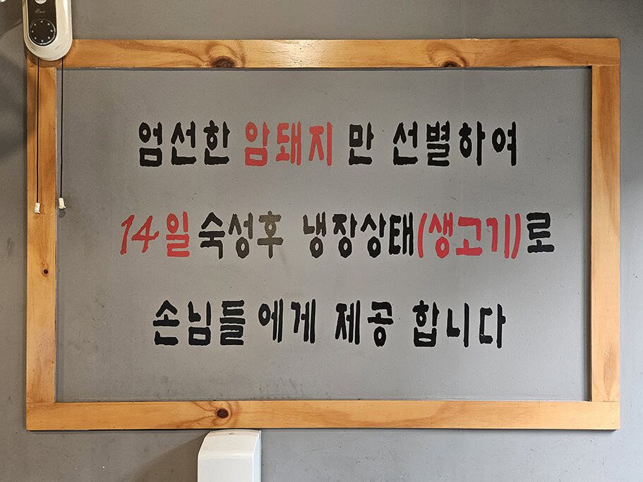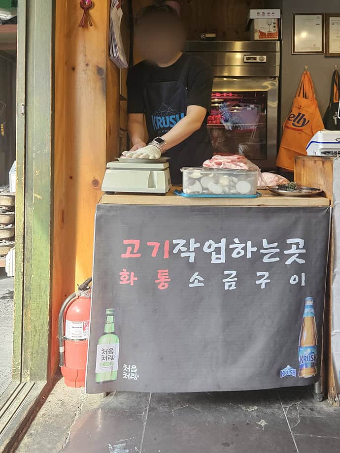 밖에서 고기 굽는 모습도 볼 수 있는데, 불길이 확 타오르며 고기 굽는 모습이 참 인상적이었어요. 매장 입구 들어가면 직접 고기 작업해서 제공해주는 분위기는 믿고 먹을 수 있으면서 맛집 특유의 포근함이 느껴져서 부담 없더라고요.