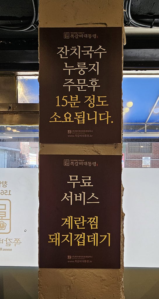 특히 돼지껍데기와 계란찜 같은 무료 서비스도 퀄리티 있게 나와서 추가로 리필해 드는 게 부담스럽지 않았답니다. 작은 센스에서 큰 만족을 느낌이랄까요?
