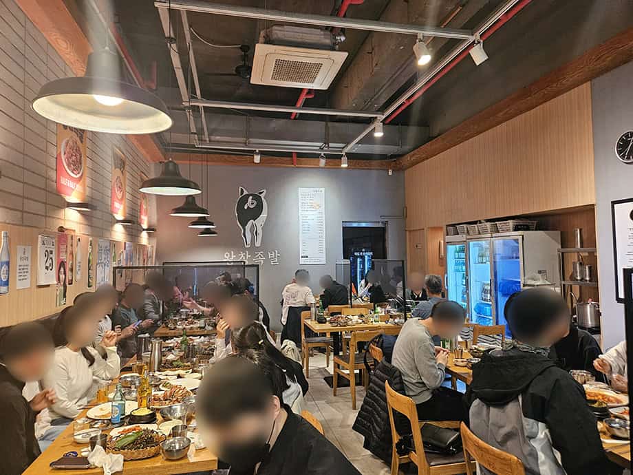 분당 수내역 왕창족발집에서 첫 번째로 느껴지는 것은 실내의 가지런한 분위기가 인상적이었고, 내부에 길게 배치된 좌석들은 옆 테이블을 신경 쓰지 않고 서로 정겹게 이야기 나눌 수 있는 부담 없는 공간 같다는 느낌이 들었답니다.