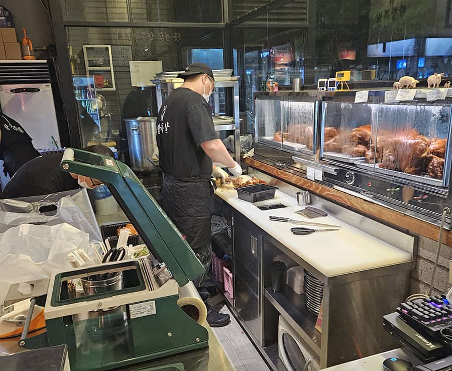 분당 수내역 왕창족발 오픈 주방에서 바라본 요리하는 광경은 말 그대로 신뢰감을 업 시켜 주었고요. 깔끔한 조리법과 위생적인 환경이 한눈에 확인이 가능하니 먹기 전부터 당연히 맛있을 거라는 믿음이 생기더라고요.