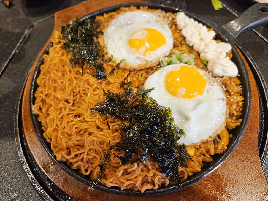 사이드 메뉴로 주문했던 팔도 비빔면 볶음밥도 상당히 독특했어요. 비주얼부터 웃는 얼굴을 보는 듯한 모습에 맛있게 비벼진 비빔면과 계란후라이 그리고 볶음밥까지 먹기 아까울 정도였답니다.