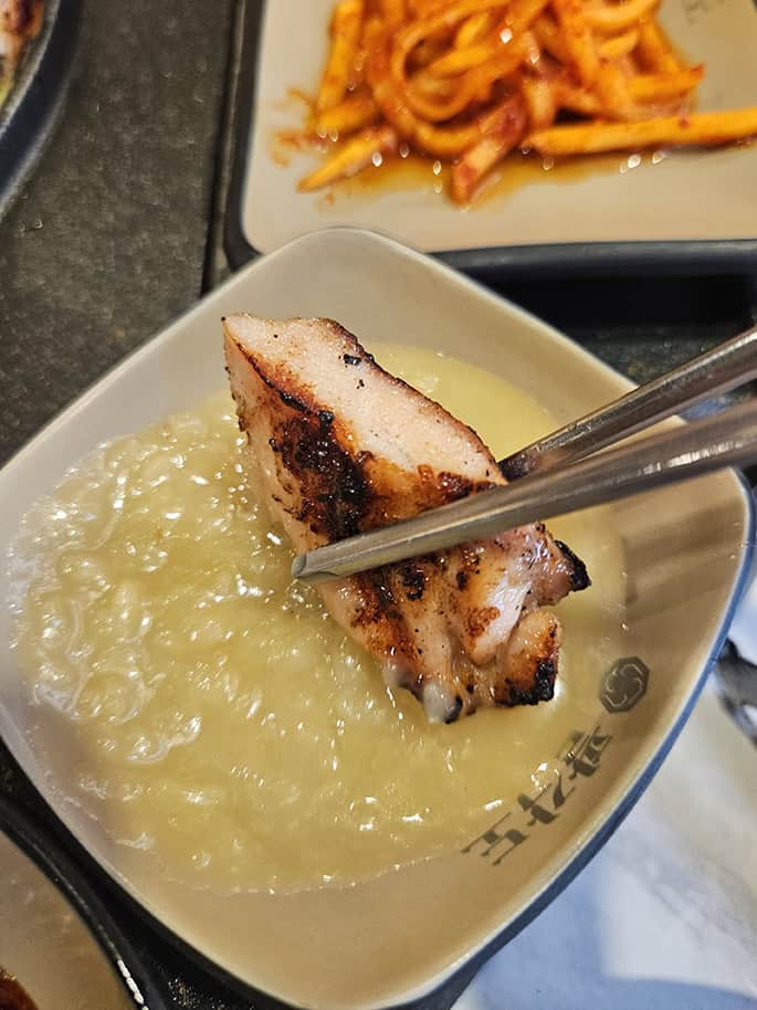 부드러우면서도 속까지 양념이 잘 밴 닭갈비는 그냥 소스에 살짝 찍기만 해도 감칠맛이 대단했어요. 무엇보다 다양한 반찬과 소스 덕분에 어떤 방식으로 먹어도 한순간도 물리지가 않더라고요. 그리고 뜨끈한 밥과 함께 드시면 진짜 절로 감탄 나와요.