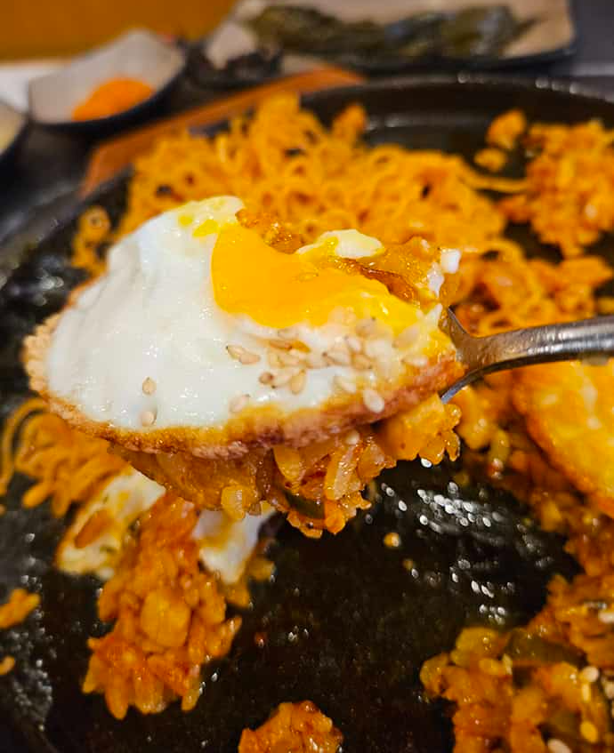 사이드 메뉴로 주문했던 팔도 비빔면 볶음밥도 상당히 독특했어요. 비주얼부터 웃는 얼굴을 보는 듯한 모습에 맛있게 비벼진 비빔면과 계란후라이 그리고 볶음밥까지 먹기 아까울 정도였답니다.