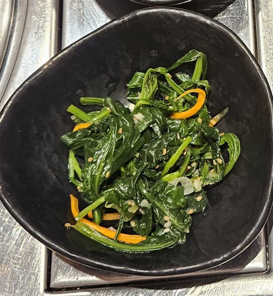 신내동 신선한우촌은 주문하기 전에 제공된 기본 밑반찬이 정말 정갈하고 다양했는데 눈부터 즐거웠어요. 초록색의 봄나물, 쌈채소, 오이도라지무침, 야채와 버무린 도토리묵 무침 등 반찬 구성이 풍부해서 고기랑 함께 먹기도 좋았고, 개인적으로 도토리묵은 너무 맛있었어요.