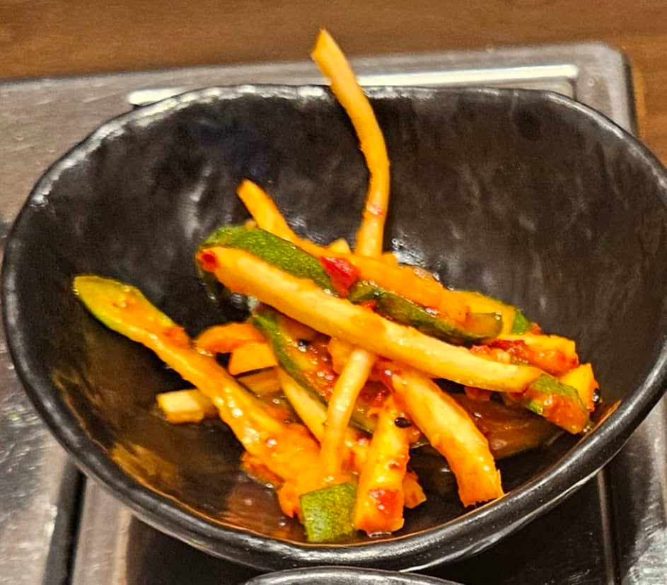 도토리묵 무침은 고소하면서도 쫀득한 질감이 입맛을 돋우기에 충분했고 야채의 신선한 식감이 기분좋게 했어요. 이런 기본 세팅에서부터 이미 깔끔한 음식점이라는 믿음이 생기더라고요. 반찬이 더 필요할 때 벨을 누르면 바로 와주시고 신속하게 리필을 해 주시는 서비스도 마음에 들었어요.