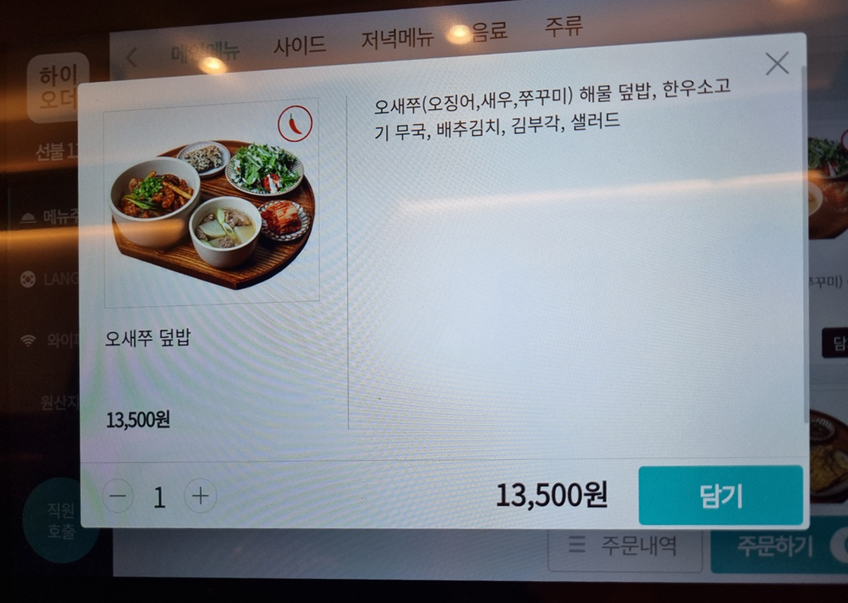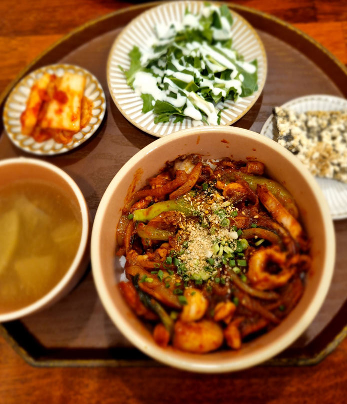 김치 덮밥, 오새쭈 새우 덮밥 같은 고급스러운 덮밥류와 든든한 한정식 스타일이 주로 인기였고요.
