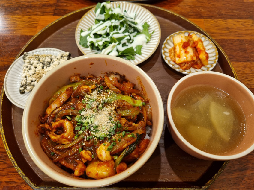 오새쭈 덮밥은 새우와 쭈꾸미가 탱글하게 잘 조리되어 있었고, 매콤달달한 소스가 어우러져 정말 맛있었어요.