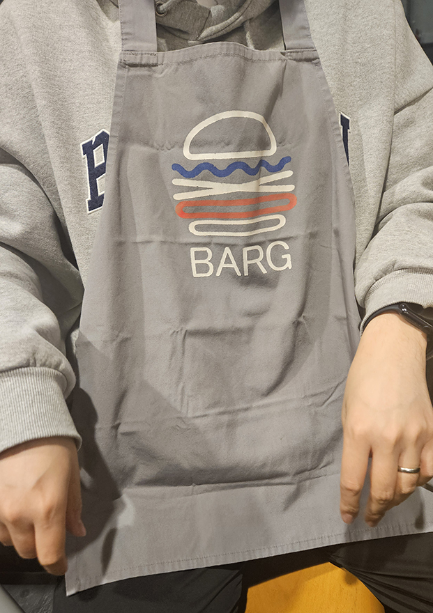 햄버거를 만드는 모습을 보니 더 먹고 싶어지잖아요? 앞치마와 비닐장갑도 셀프로 준비할 수 있게 배치되어 있는데, 이런 작은 디테일이 너무 좋더라구요.