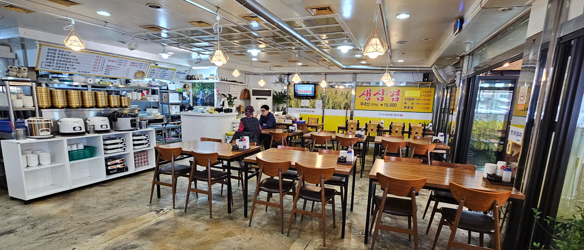 처음 문을 열고 들어가니, 약간 옛날 분위기의 정겨운 인테리어가 입구부터 반겨줘요. 가족이 따로 할 수 있는 홀이 좌측과 우측에 따로 있어서 가족끼리 오기 딱 좋겠더라고요. 이렇게 홀이 분리가 되어있어서 단체손님도 많이 오는 것 같아요,