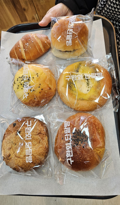 구환회의 또 다른 매력은 저렴한 가격! 아이들이 좋아하는 모닝빵부터 고급지고 고소한 크림이 들어간 갈릭 치즈빵까지 가격대가 정말 착했어요. 크기와 맛을 비교했을 때, 요즘 웬만한 베이커리 카페보다 훨씬 저렴해서 부담 없이 여러 종류를 맛볼 수 있는 게 큰 장점이에요. 다들 구매할 때 어마어마한 양으로 사가길래, 저도 안 살 수가 없더라고요.