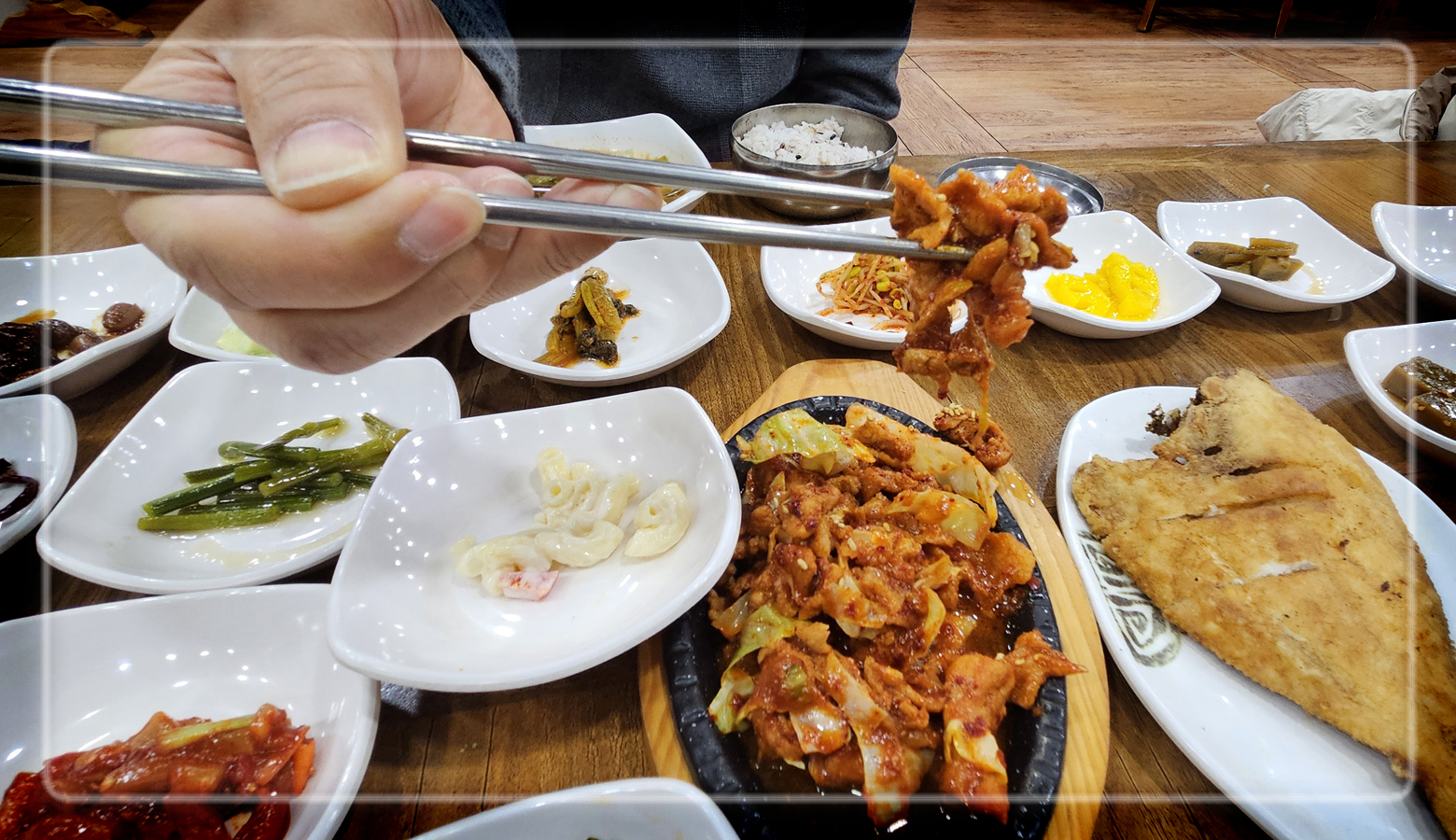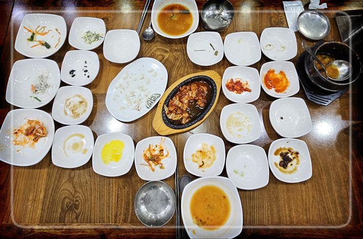 테이블이 금세 반찬들로 꽉 찼던 그 순간,