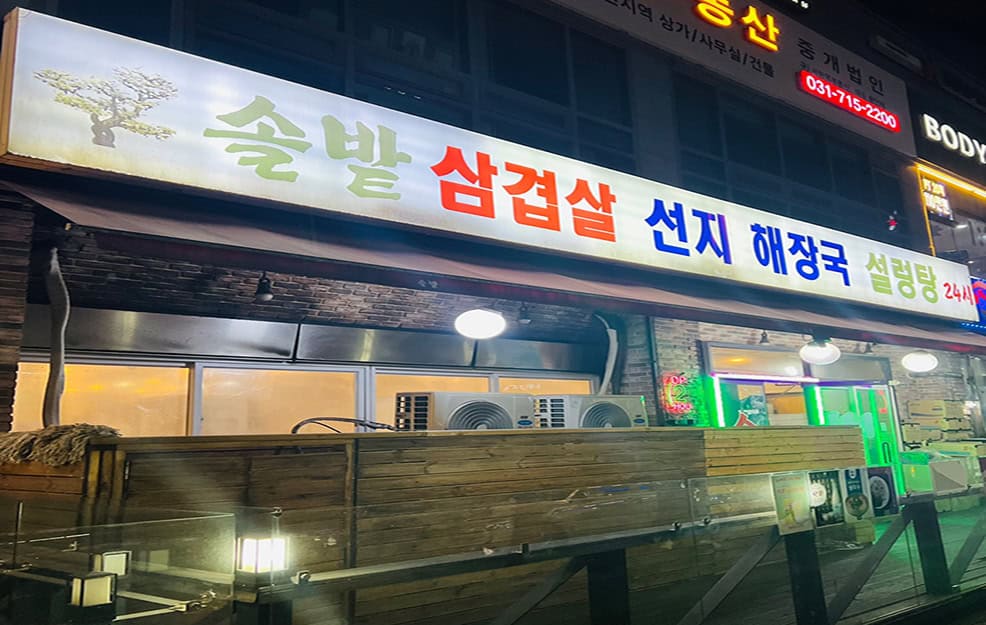 분당 솔밭 삼겹살은 분당의 중심지에서 가까워 접근성이 꽤 좋아요. 수인 분당선 서현역 4번 출구에서 도보로 5분 정도면 도착할 수 있었는데요, 도로 옆에 위치해 있어서 찾기 쉬웠고, 주차 공간도 꽤 넉넉했답니다.