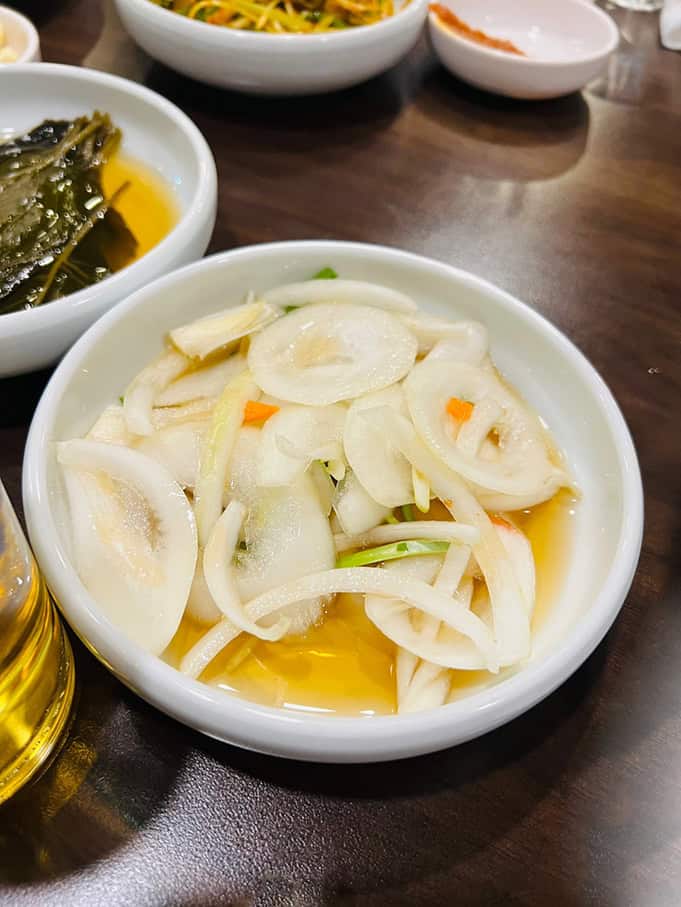 고기와 함께 싸 먹으면 무생체와 배추의 맛이 더 도드라졌어요. 배추는 은은한 단맛이 살아있고, 무생체는 느끼한 삼겹살의 맛을 쫙 잡아주더라고요. 한 번은 정성스럽게 고기를 꾹 싸서 먹어봤는데, 이 조합은 말 그대로 감동 그 자체... 매콤, 새콤, 그리고 짭조름한 맛까지 모두 한 번에 느껴졌어요!