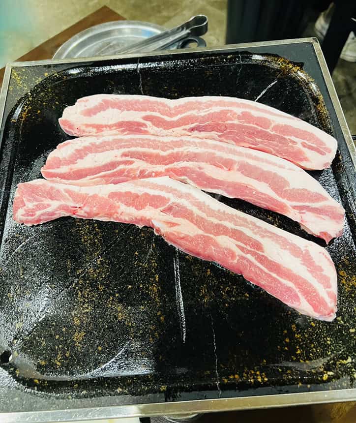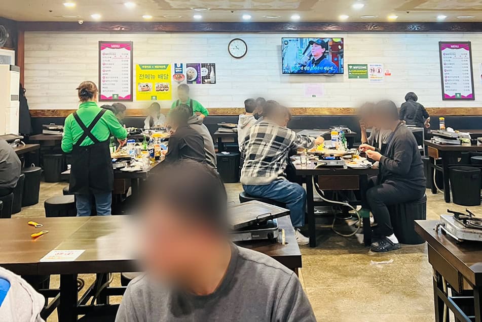 식당에 들어서자마자 삼겹살 지글지글 익는 냄새와 고소한 향이 확 풍겨왔어요. 내부는 깔끔하고 넉넉한 테이블 간격 덕분에 복잡하지 않았고요. 마치 잘 정돈된 전통 고깃집 같으면서도 현대적 감각이 묻어나더군요. 누구라도 편하게 앉아서 식사를 즐길 분위기랄까. 벌써부터 불판 위에서 지글거릴 삼겹살이 얼마나 맛있을지 기대되지 않을 수 없었답니다!