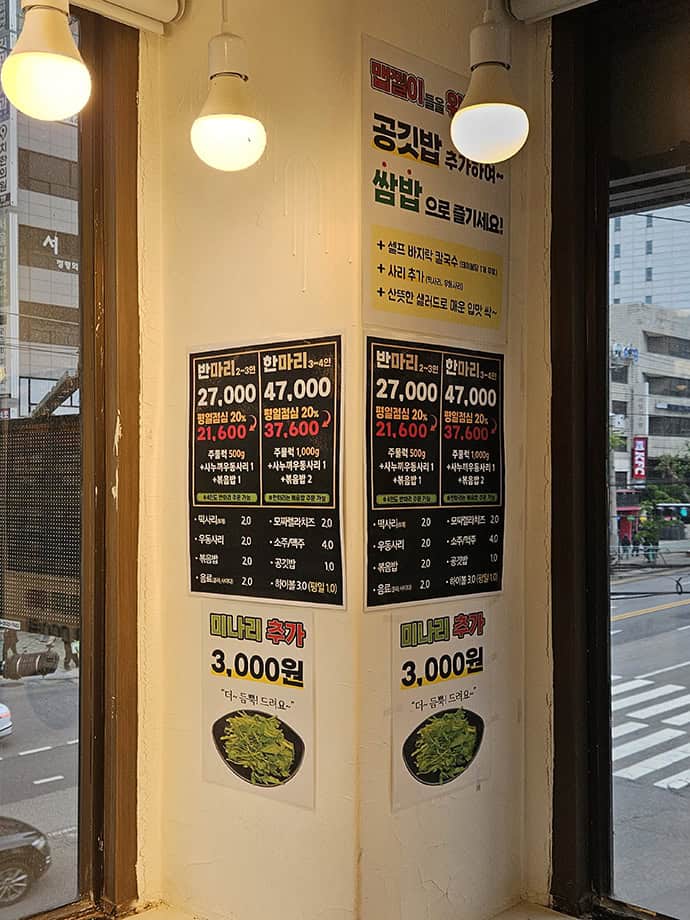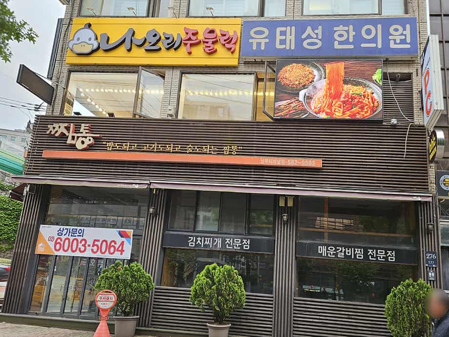 "나오리주물럭"은 남부터미널역 5번 출구에서 130여 미터로 도보 2~3분 거리라는 초 역세권에 자리 잡고 있어요. 한일시멘트 건물 맞은편에 위치하고 있어서 길 찾기도 엄청 쉽더라고요.