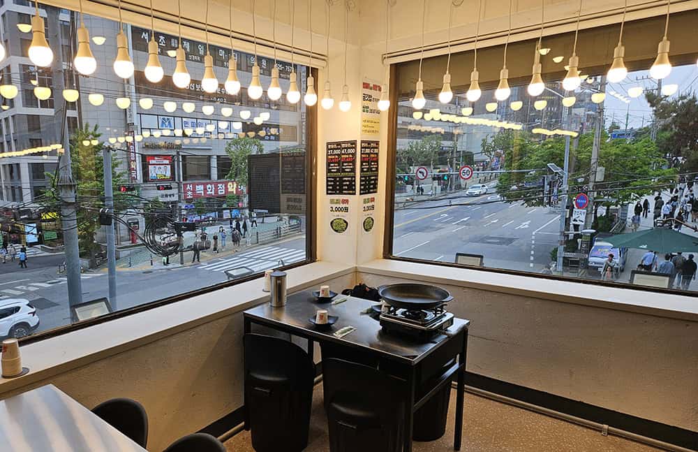 남부터미널맛집의 또 하나 인상적인 점은 큰 통유리창으로 남부터미널 주변을 내다볼 수 있다는 점이에요. 뷰를 보며 정답게 담소도 나누고 여유롭게 식사를 즐기는 시간이 정말 좋았어요.